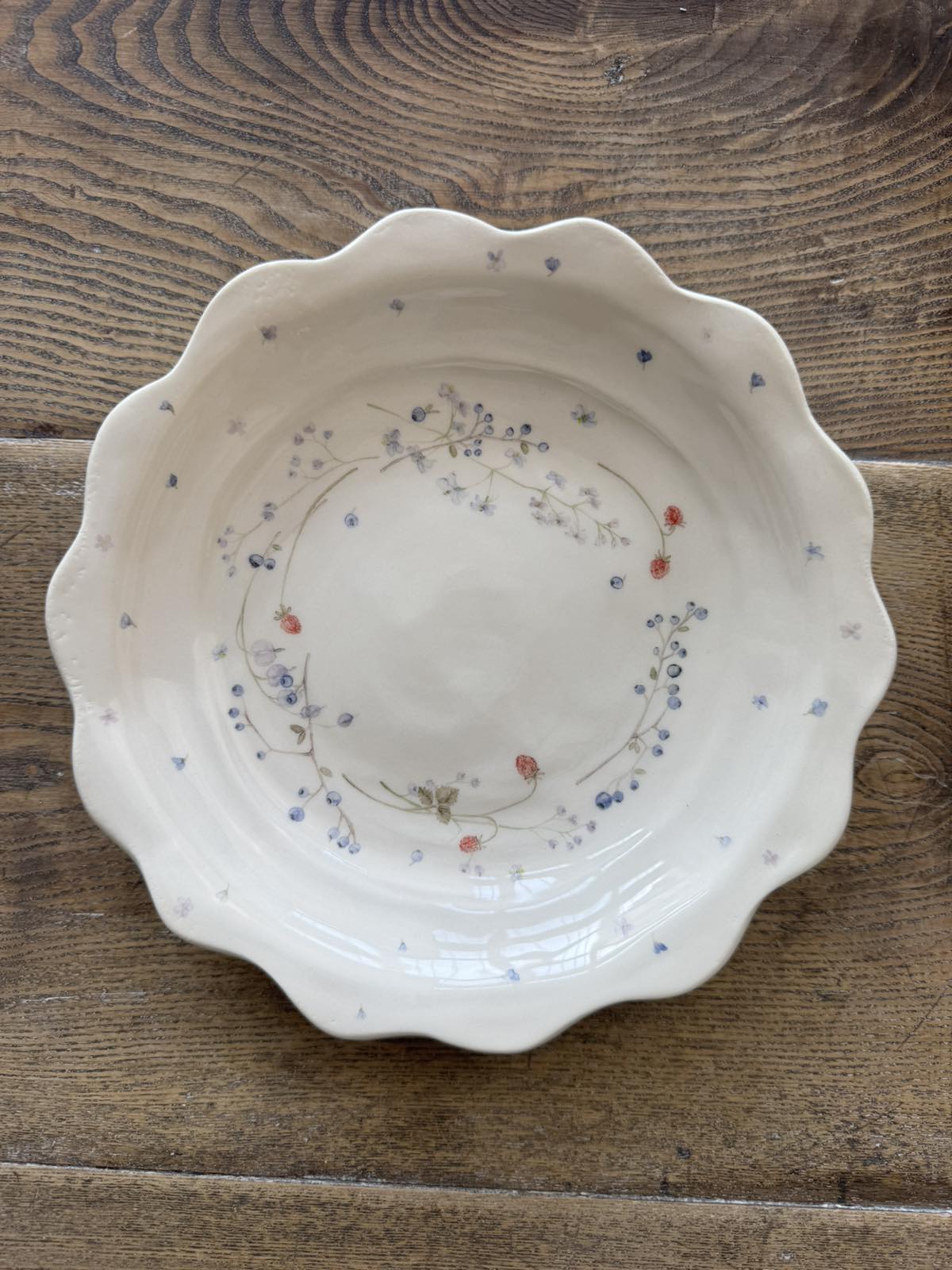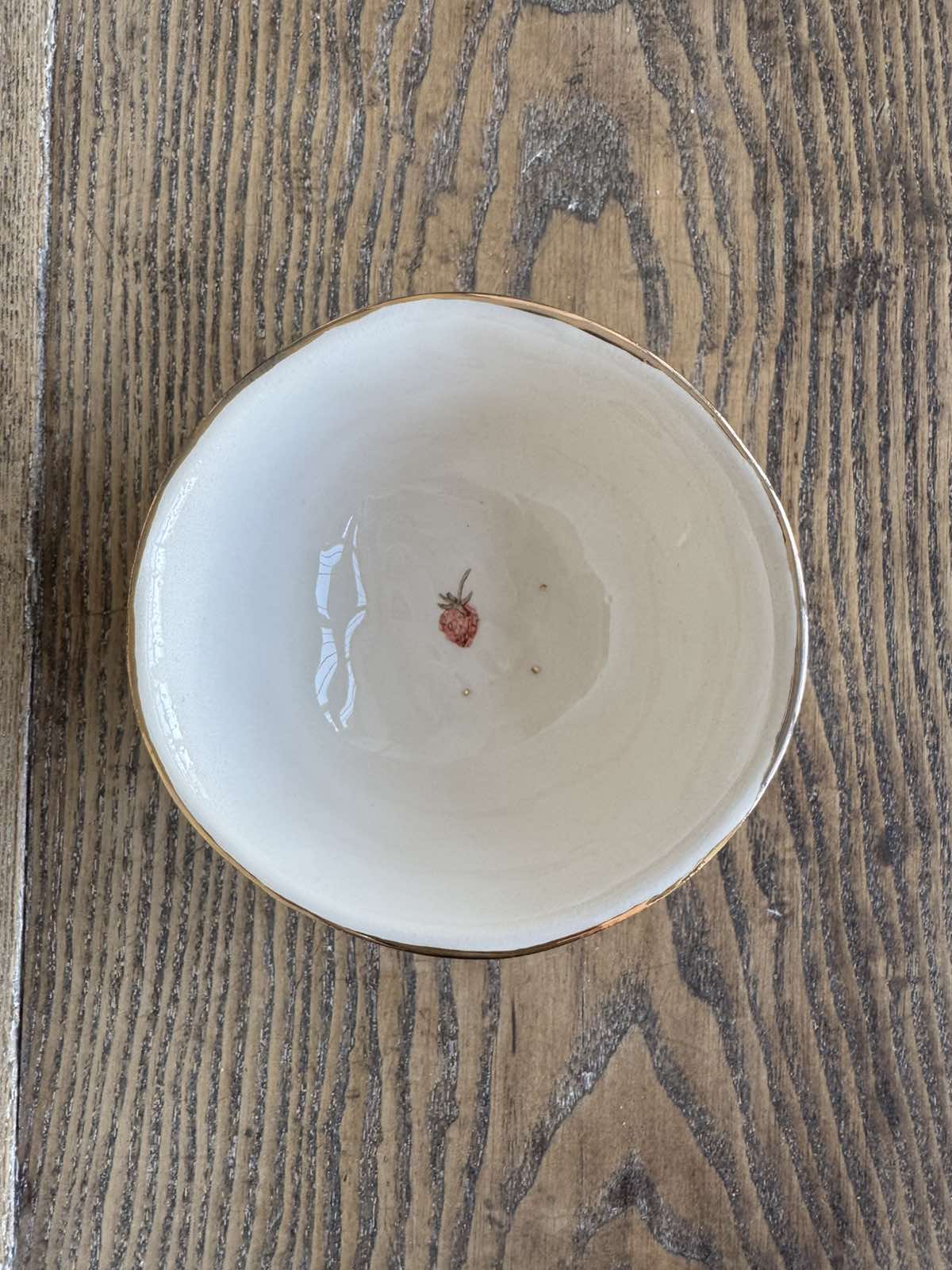 Dekoruotas žemuoge. Subtilus platinos žvilgesys kuria ryto rasos jausmą žemuogių žieduose.